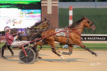 Columbus, MN – Trainer/Driver Nick Roland posted an impressive sweep of the first four races on the Tuesday night (Aug.12) program at Running Aces, completing the grand slam with a very sharp effort from freshman male pacer Wild About Me who surged from the pocket during the final sixteenth of a mile to capture his second win in just three career starts.