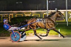 In the $11,500 mid-level conditioned pacing nightcap, Escape The House (Jim McNeight Jr.) followed P L Notorious (Kevin Cummings) from the start of the race until the top of the stretch, where McNeight tipped Escape The House into the passing lane and out-brushed So Amazing (John Cummings Jr.) and It’s Mesmerize N (Kyle Swift) to win by a neck in 1:56, scoring a major upset at 22-1.